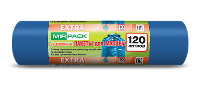 Мешки для мусора 120 литров, 14 мкм, ПНД, 10 шт. синие, 70х110 см, EXTRA