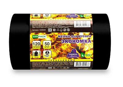 Мешки для мусора 120 л, 20 мкм, рул. 50 шт, ПВД, черные