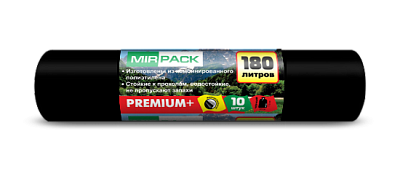 Мешки для мусора 180 литров, 35 мкм, черные (ПВД, в рулоне 10 штук, 93x110 см) Мирпак 2 слоя