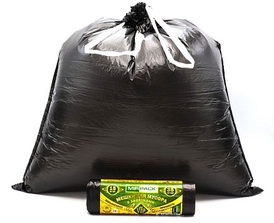 Пакеты для мусора 35 литров с завязками, 15 мкм, ПНД, в рулоне 15 штук, черные, 50х60 см
