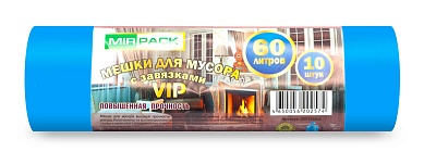 Пакеты для мусора с завязками 60 литров, 15 мкм, 10 шт. ПНД, синие, для среднетяжелого мусора прямое дно + ленты для затягивания