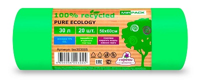 Пакеты для мусора биоразлагаемые 30л, 12 мкм, 20 шт. ПНД, зеленые
