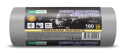 Мешки для мусора 160 л, 40 мкм, ПВД, в рулоне 10 штук, 93х130 см, 2 слоя, Силачи, серые
