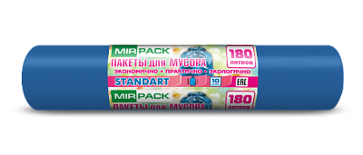 Мешки для мусора 180 литров, 25 мкм, синие ПВД, в рулоне 10 штук, 93x110 см Стандарт 2 слоя