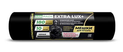 Мешки для мусора 180 литров, 60 мкм, 10 шт, ПВД, 93х110 см, черные, EXTRA LUX