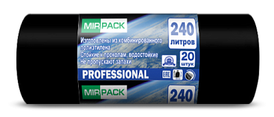 Мешки для мусора 240 л, 35 мкм, ПВД, черные 20 шт, 93x130 см, Professional - 2 слоя