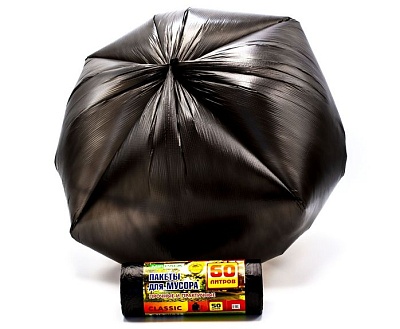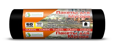 Мешки для мусора 60 литров, 7 мкм, в рулоне 50 штук, черные, 60х70 см, GreenClean