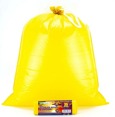 Пакеты для мусора с завязками 35 л, 15 мкм, 15 шт, ПНД, желтые, с ручками