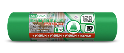 Мешки для мусора 120 л, 40 мкм, ПВД, 10 шт, двухслойные, 70х110 см, зеленые