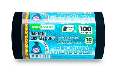 Мешки для строительного мусора 100 л, 70 мкм, ПВД, 10 шт, 2 слоя, 60x100 см, Premiume плотные черные